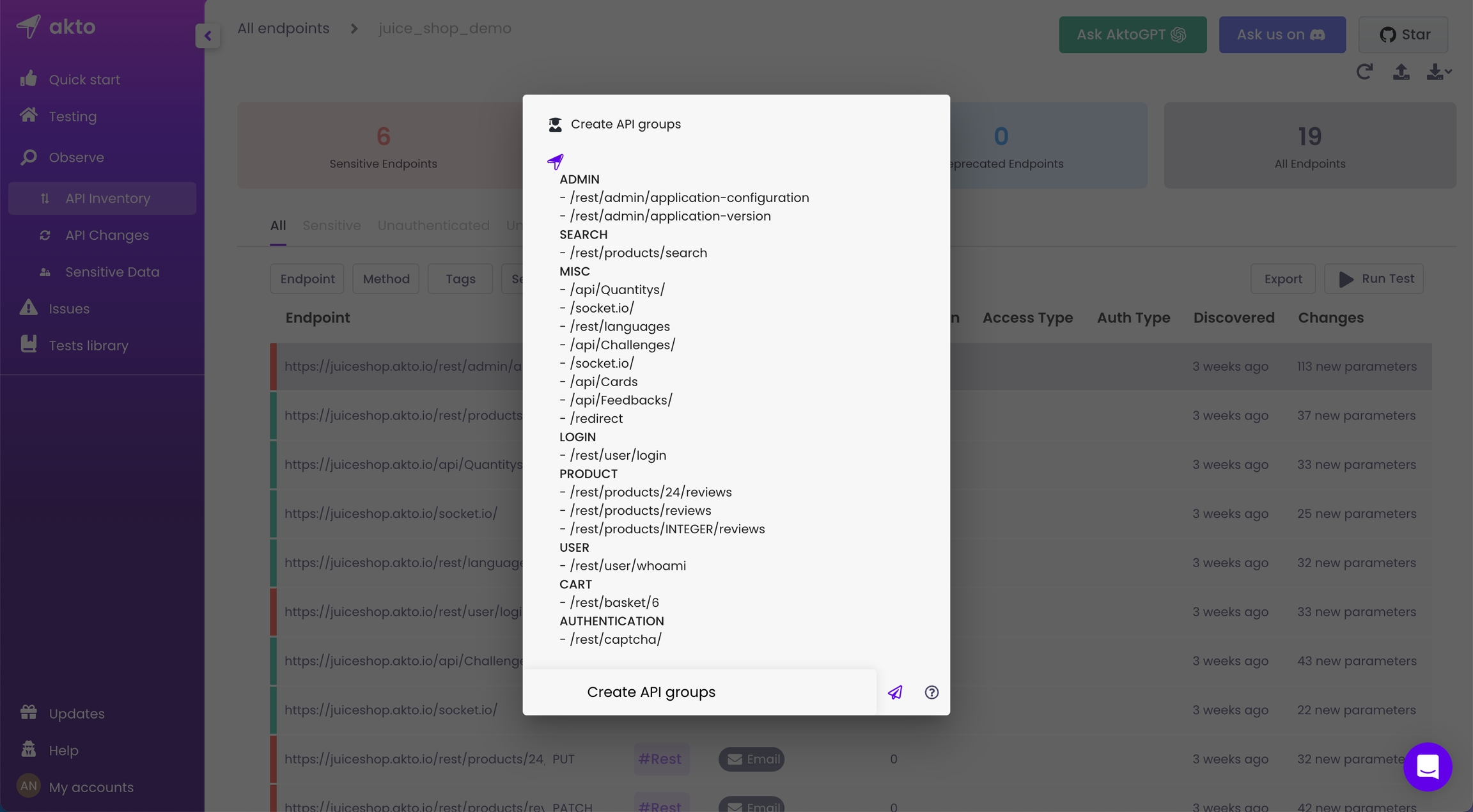 You can use AktoGPT to automatically group APIs based on their functionality. Follow these steps