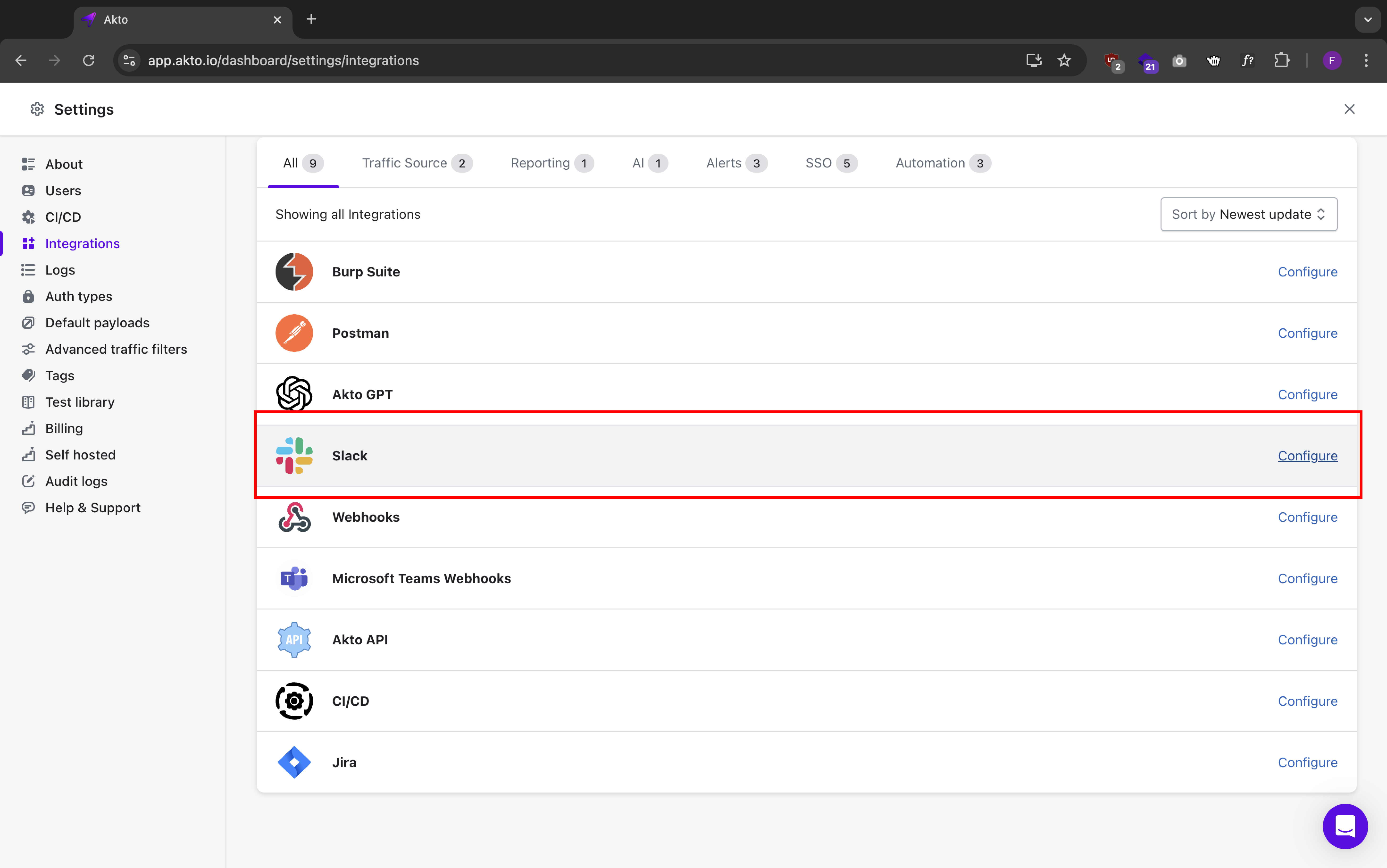 * Paste Slack Webhook URL in Akto