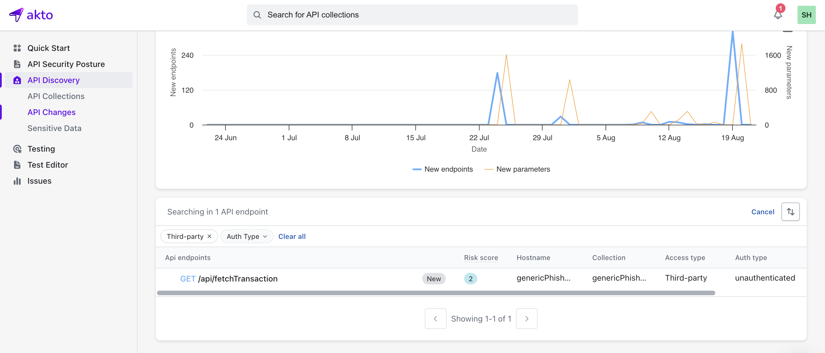 In Akto's API inventory, these are clearly marked with the "Third-party" access type, helping you distinguish them from your internal APIs. This categorization is crucial for maintaining visibility over your application's external dependencies and ensuring proper security monitoring of all third-party integrations.