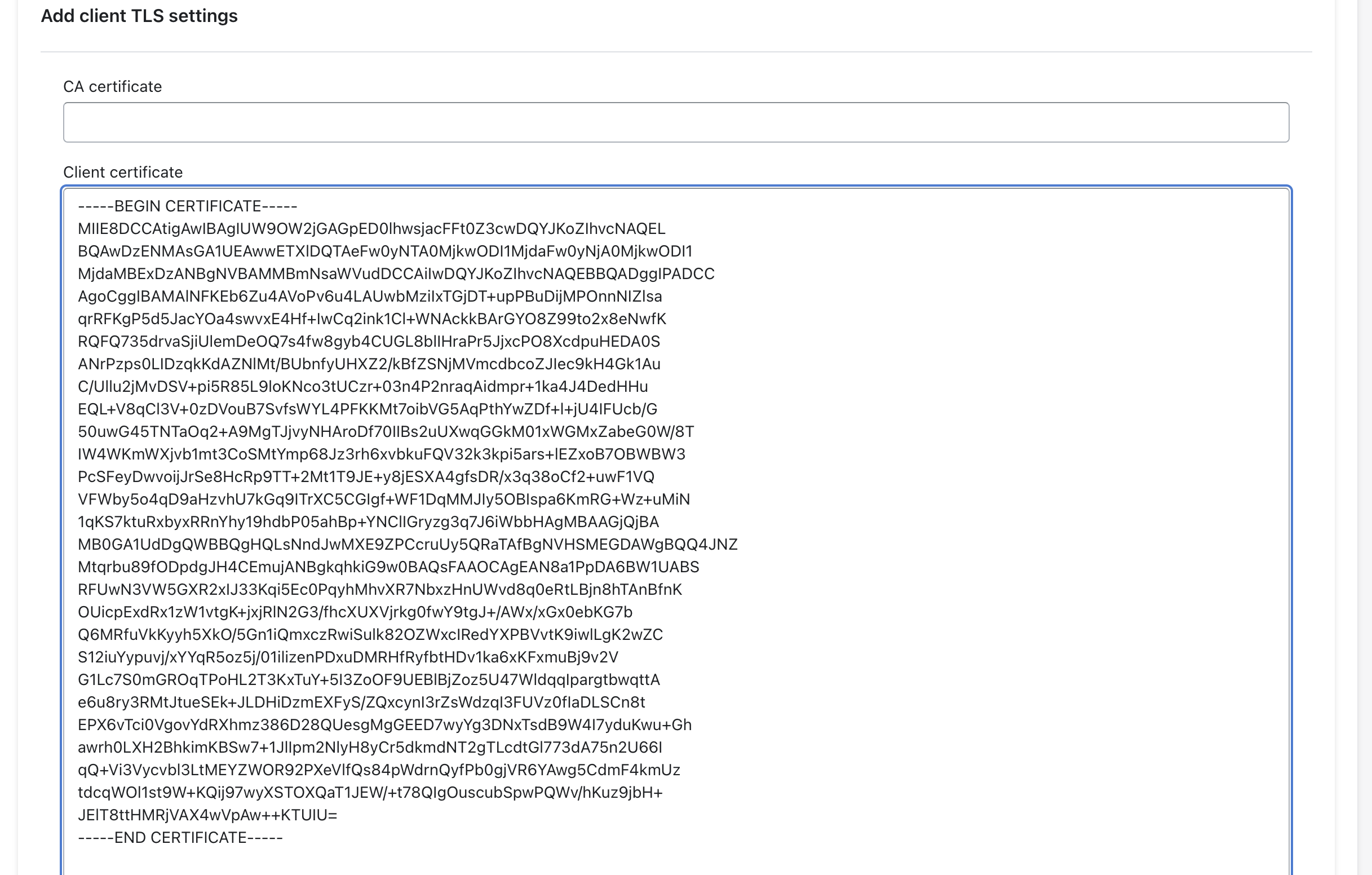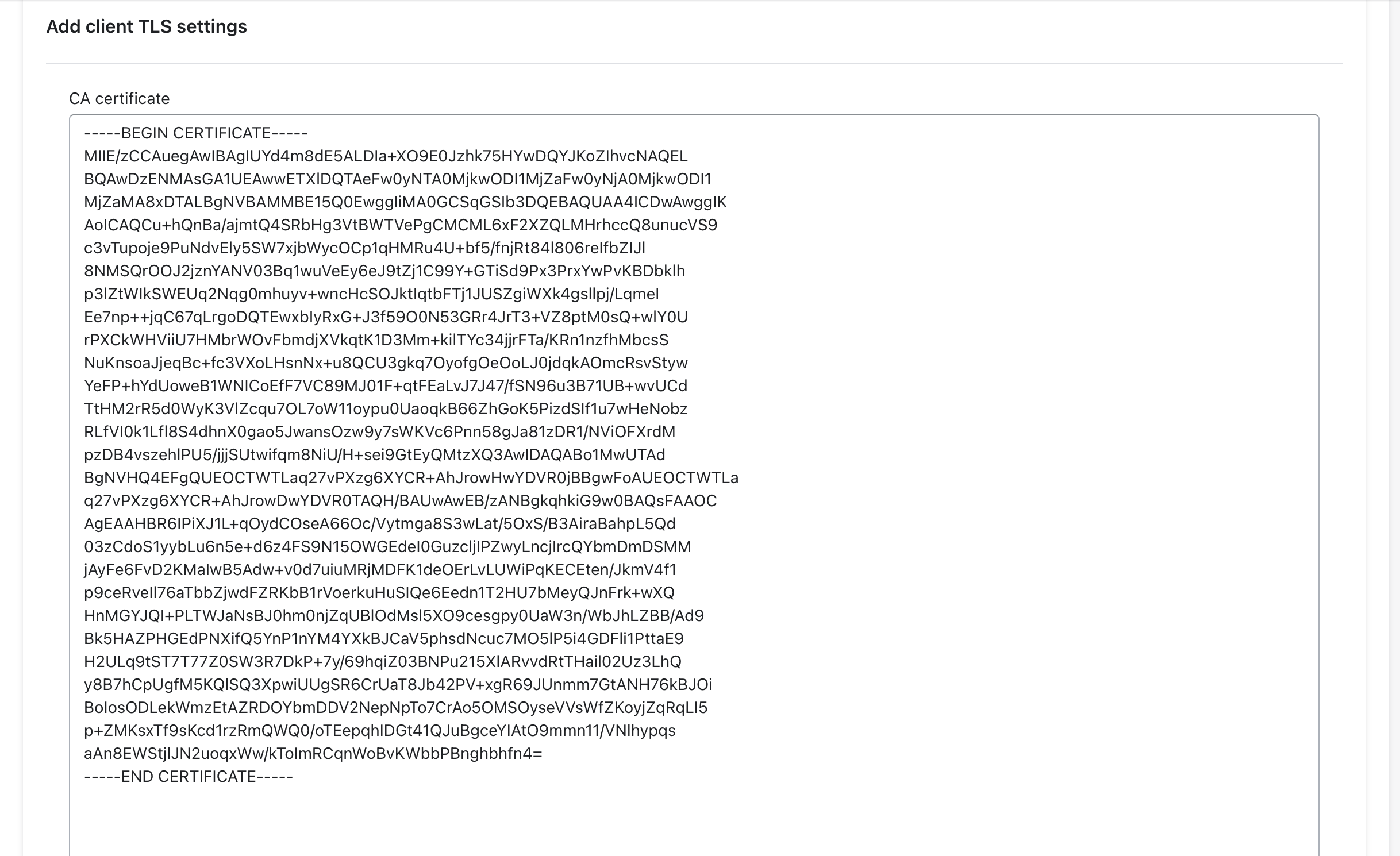 3\. Input the certificate authority certificate (optional, leave the input blank if you do not have one)
