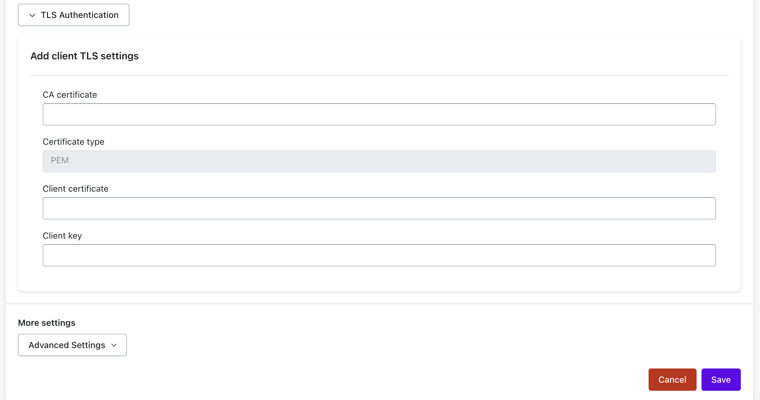 Click on `TLS Authentication` to reveal the configuration inputs.