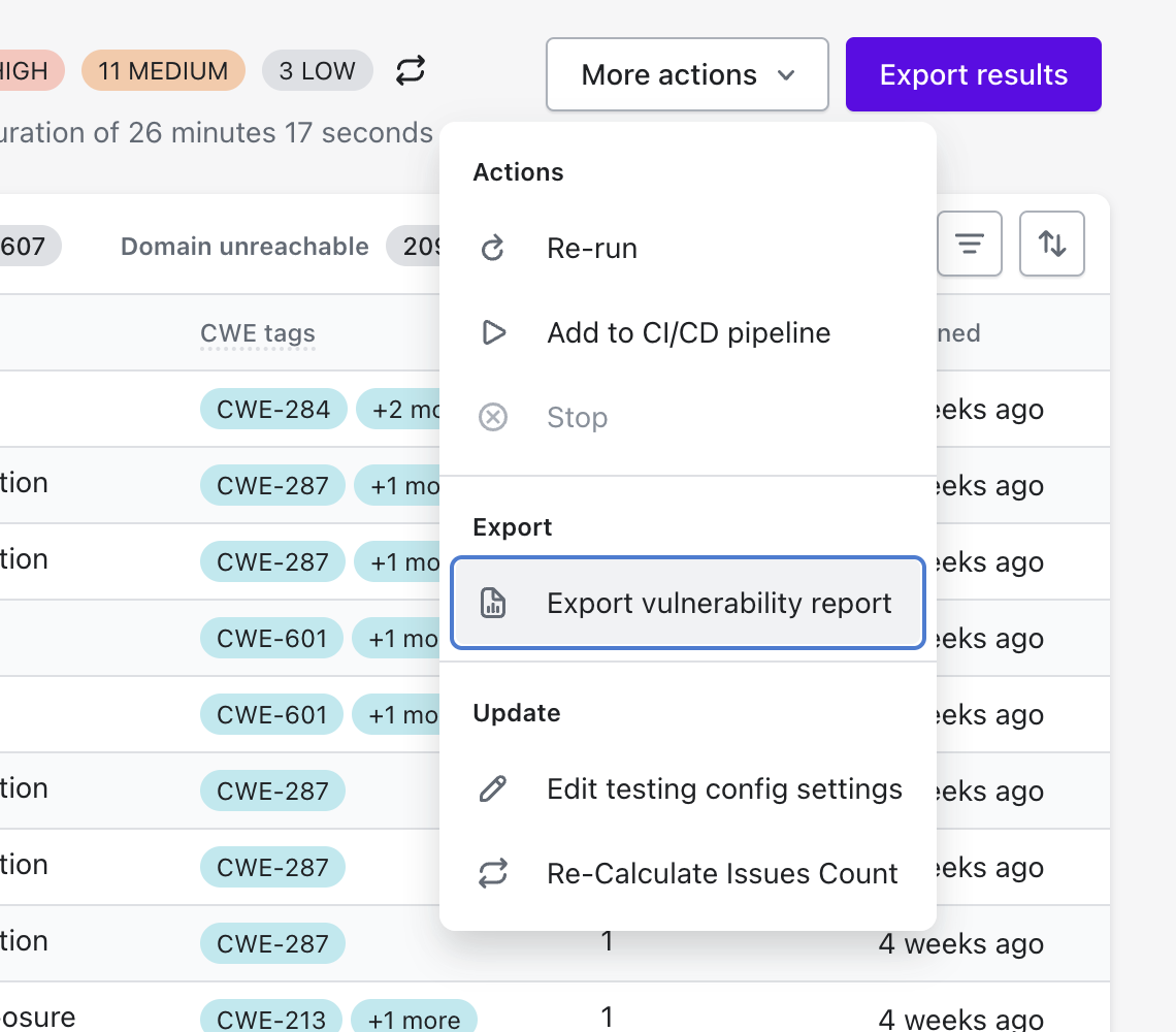 # Export Vulnerability Report from Test Results