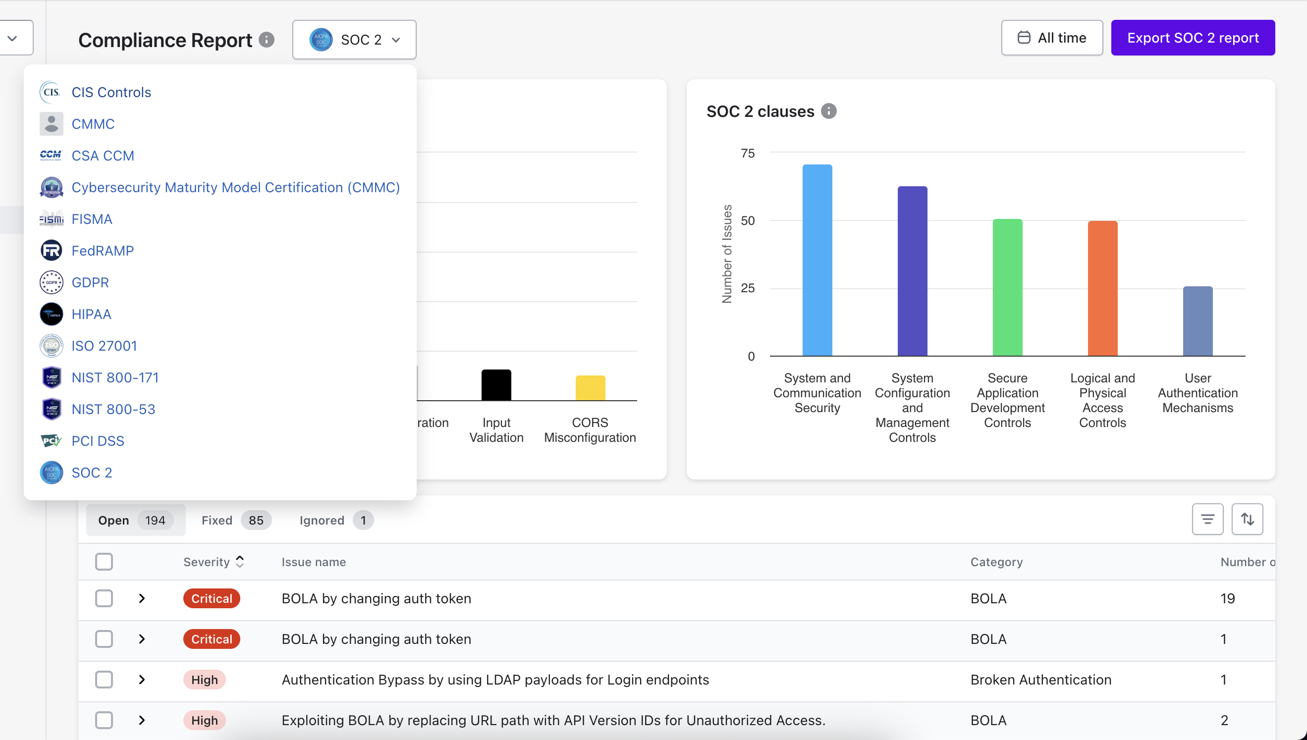 3. Use the dropdown at the top to select a compliance standard (e.g., SOC 2, HIPAA).