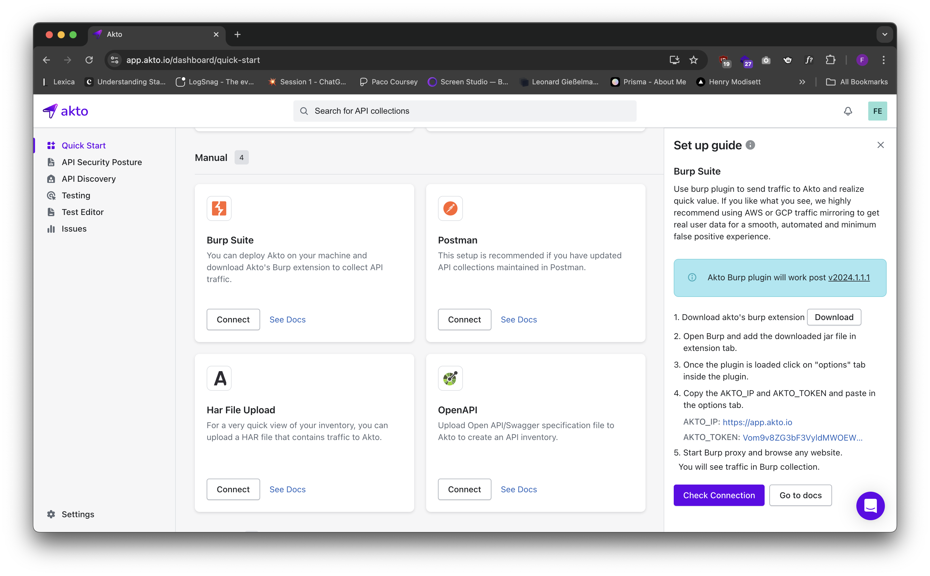 3. Follow the specific instructions for your chosen connector to start feeding API traffic into Akto