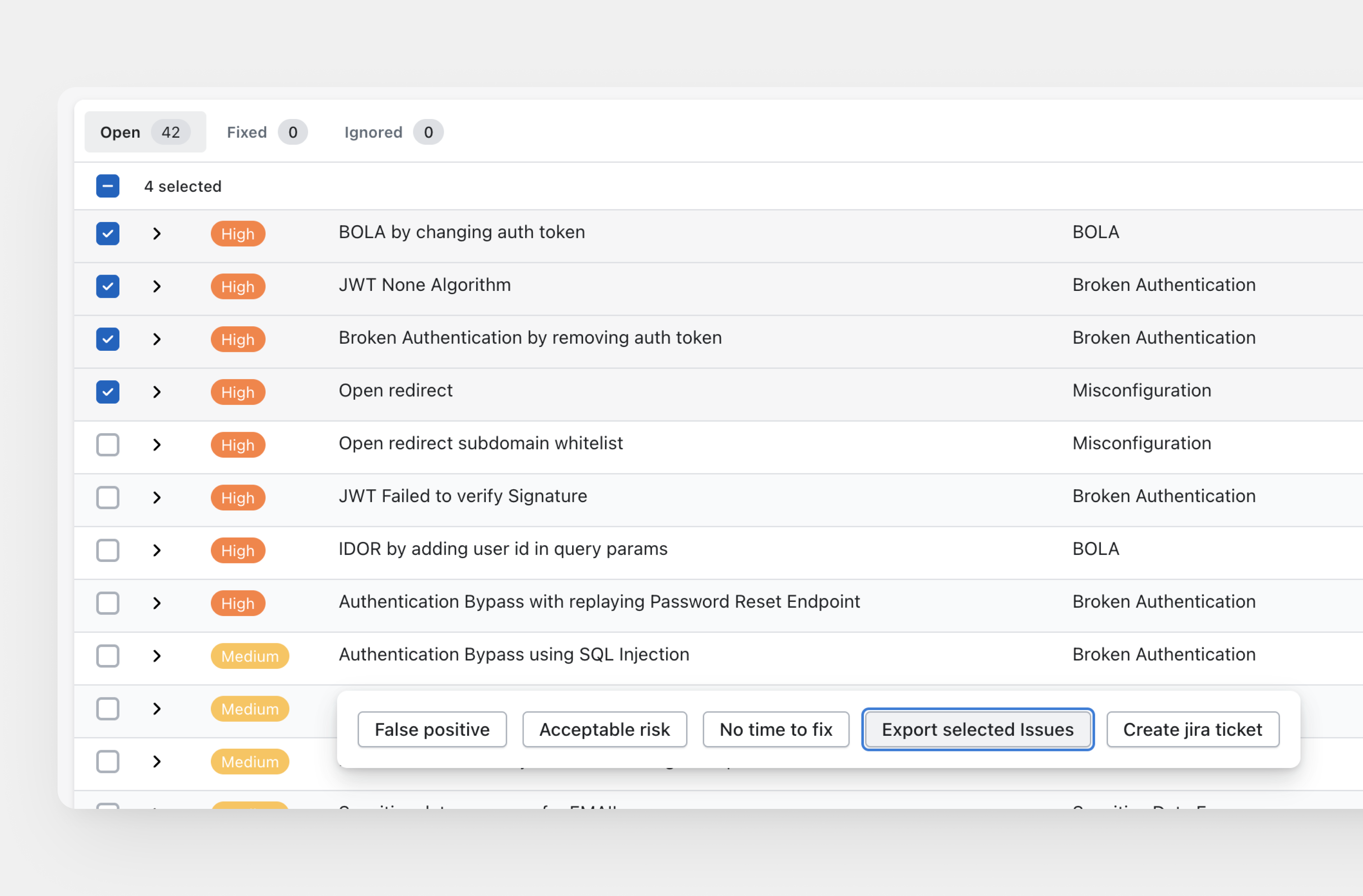 Export selected issues to reports, allowing for better customization and filtering of what to include.