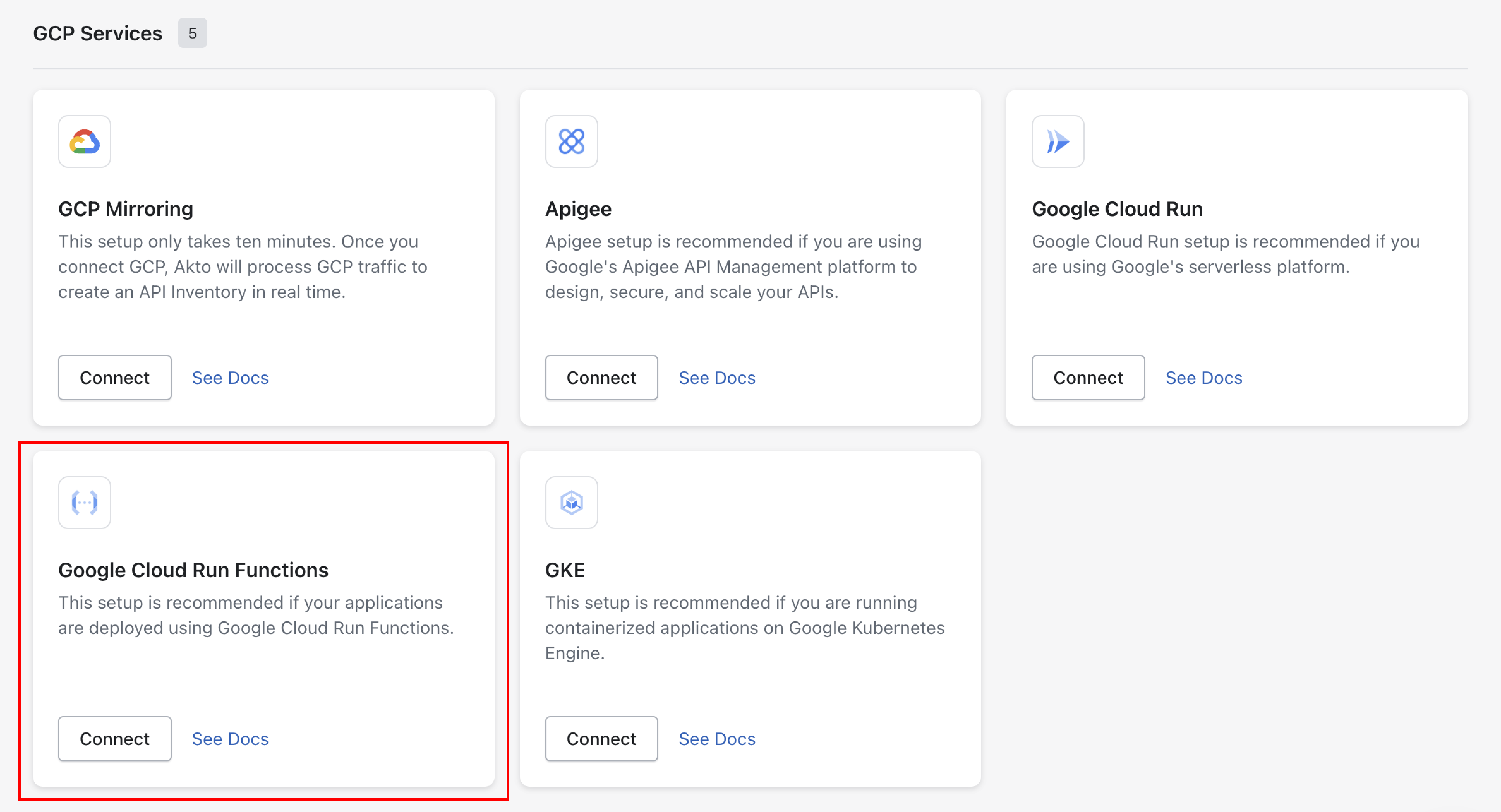 2. Scroll to **Google Cloud** block and click on the **Connect** button to get instructions